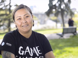 Poet and performance artist ecoaborijanelle (Janelle Pewapsconias) inspires students to work on creative expression through the theme of "wellbeing" by connecting with their senses.
