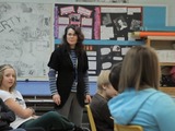Poet and performance artist ecoaborijanelle (Janelle Pewapsconias) inspires students to work on creative expression through the theme of "wellbeing" by connecting with their senses.